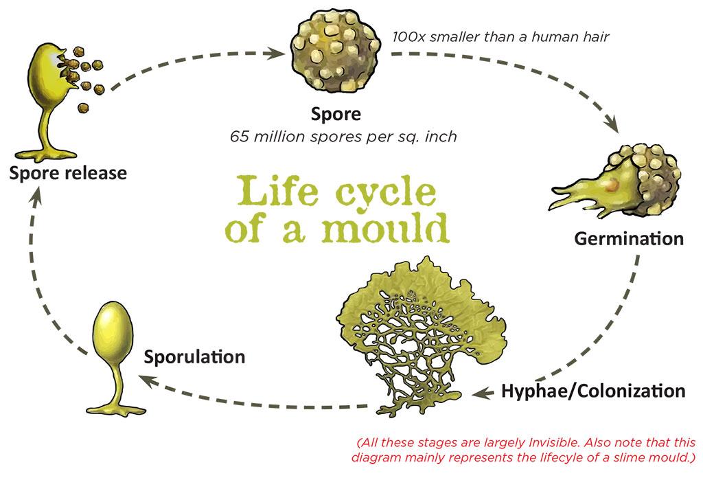 Have you noticed the furry, cottony growth on very old pieces of bread, tomato, or an expired food item? Well, those, often awful-looking things, are the hyphae of moulds, spreading and thriving on our foodstuffs. Once their moisture dries out, they magically disappear too. But, it’s not the end of their life! By now, they’ve already released their spores, so they can grow again anywhere, as soon as they find enough moisture.